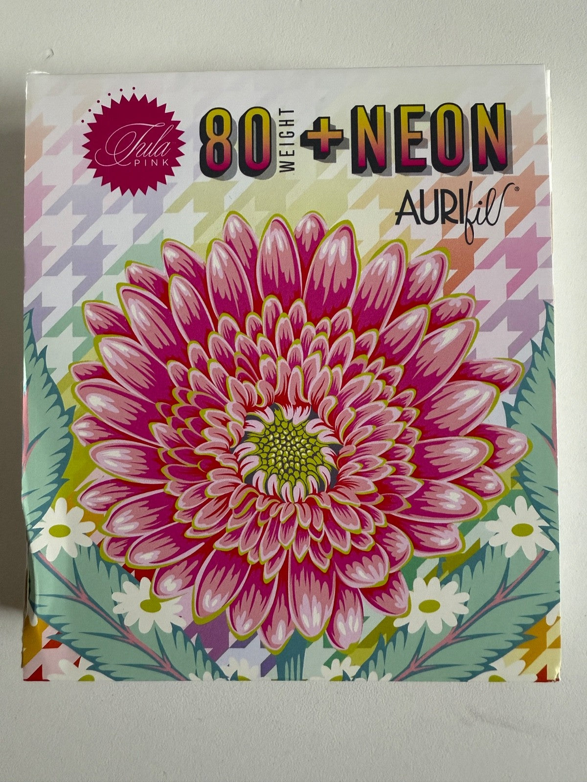 Sie kaufen die Aurifil "Neon" Kollektion von Aurifil in der Stärke 80 WT. Die Auswahl der 10 enthalten Spulen hat Tula Pink getroffen. Das Material ist 100% Mako Baumwolle, 100 % 580 WT-Garn, 274 m pro Spule auf der Holzspule.