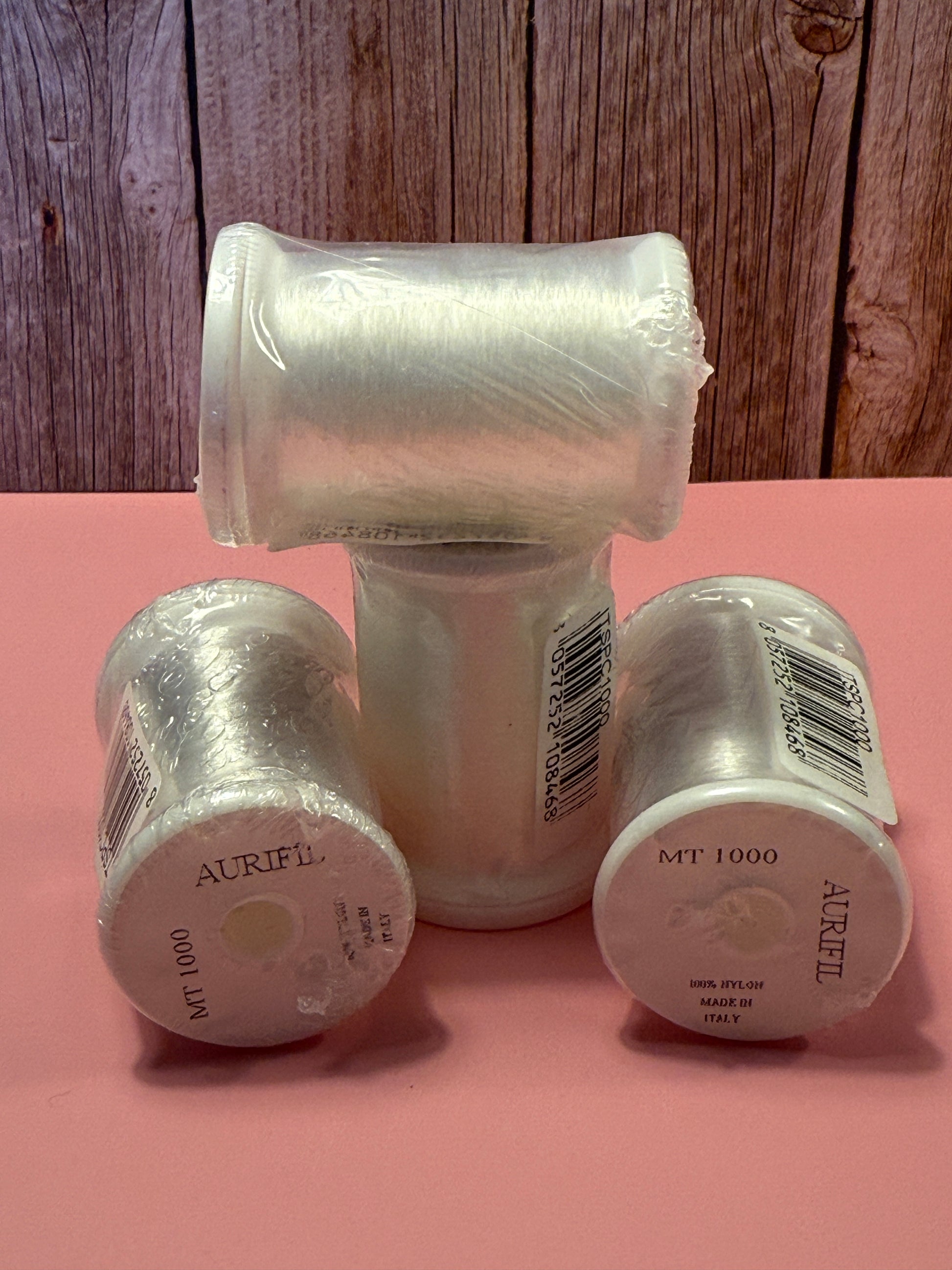 Es handelt sich um eine Rolle Aurifil Monofilament mit der Lauflänge von 1000 Meter pro Rolle in der hellen Qualität. Damit können Sie auf hellen Stoffen unsichtbar nähen. Dieses Garn ist für mich der Gamechanger beim 3D EPP (English Paper Piecing) wenn es an das Zusammennähen von Innenteil und Außenteil geht, da dieses mit diesem Garn fast unsichtbar möglich ist.