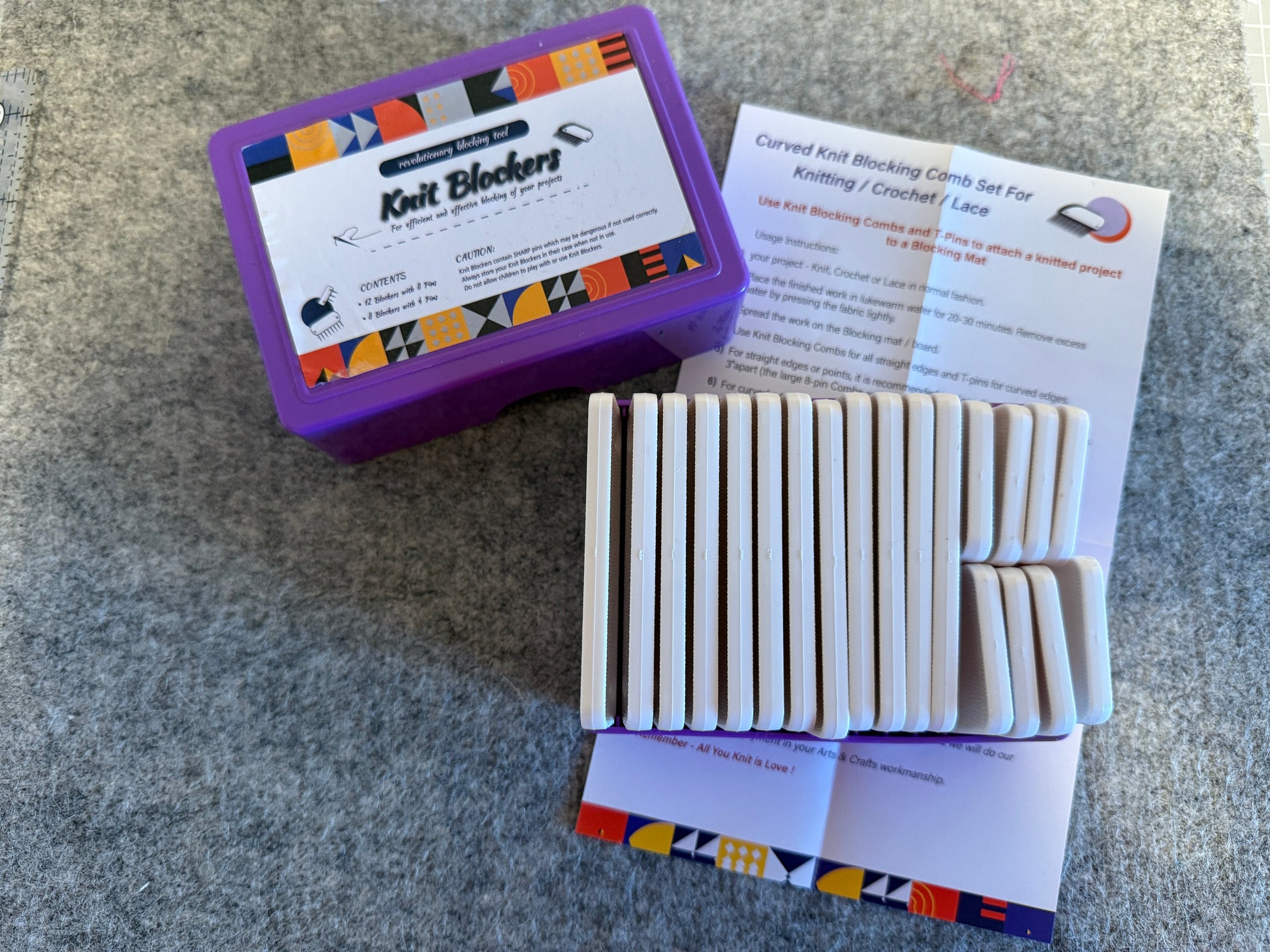 Mit Hilfe dieser Kammnadeln können Strickstücke nach der Fertigstellung gespannt werden. Gerade bei Tüchern ist dies wichtig, da diese ja nach Muster zum einrollen neigen. Dazu werden die Strickstücke angefeuchtet und dann mit Hilfe der Nadeln auf einem Untergrund wie einer Schaumstoffmatte, Matratze, einem Handtuch oder auf Couch etc. gespannt und anschließend trocknen gelassen.