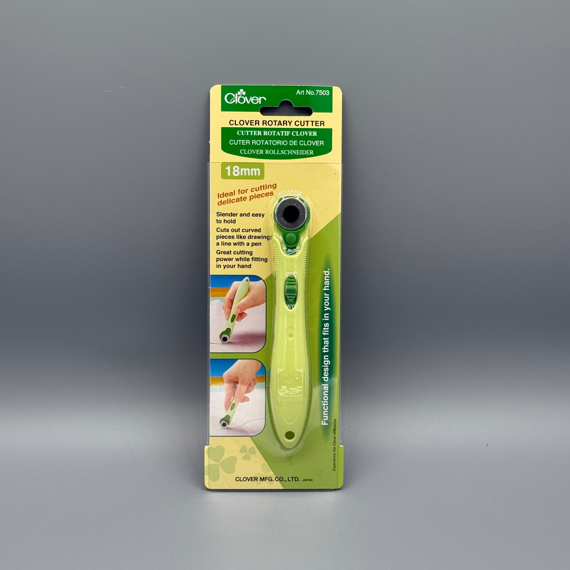 Dieser Rollschneider von Clover ist ideal für schwierige Zuschneidearbeiten. Er liegt gut in der Hand und hat eine präzise Klinge von 18mm Durchmesser mit der sich schön arbeiten lässt. Gerade für Kurven und Rundungen ist er ideal geeignet.