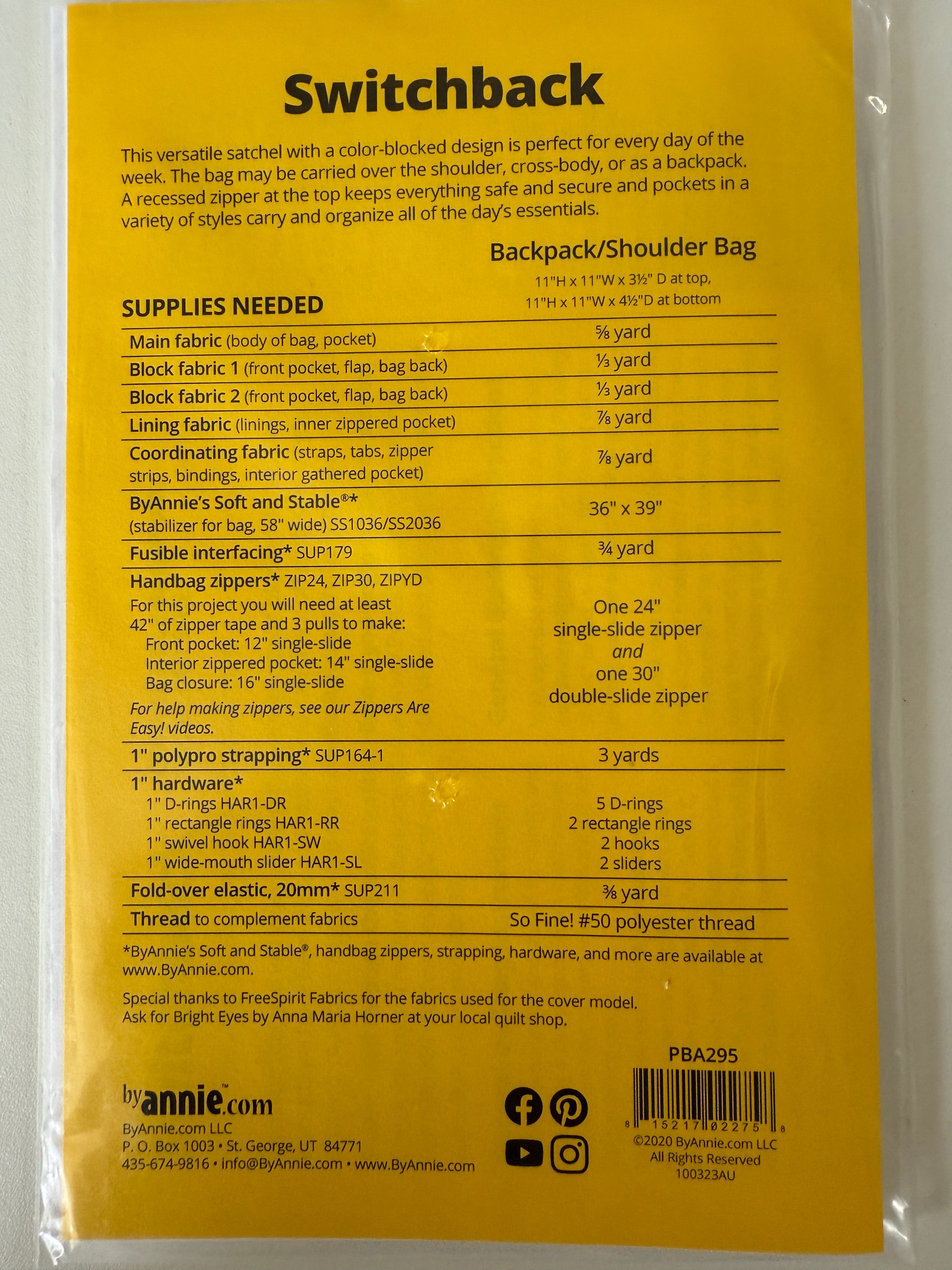 Sie erhalten das Papier-Schnittmuster für die Tasche Switchback von „By Annie“. Die Tasche kann als Rucksack getragen werden oder über der Schulter bzw. als Cross Body Back getragen werden,