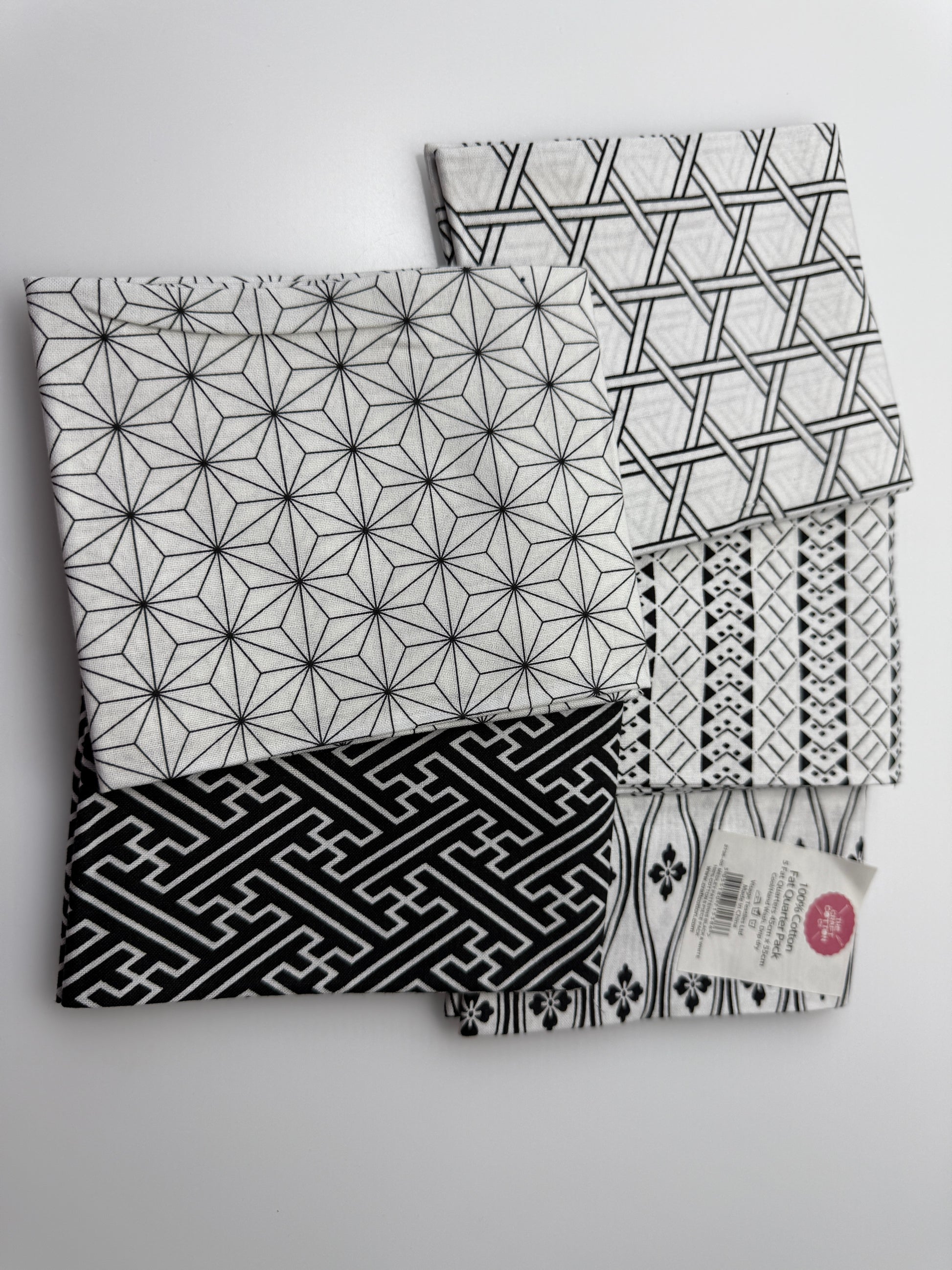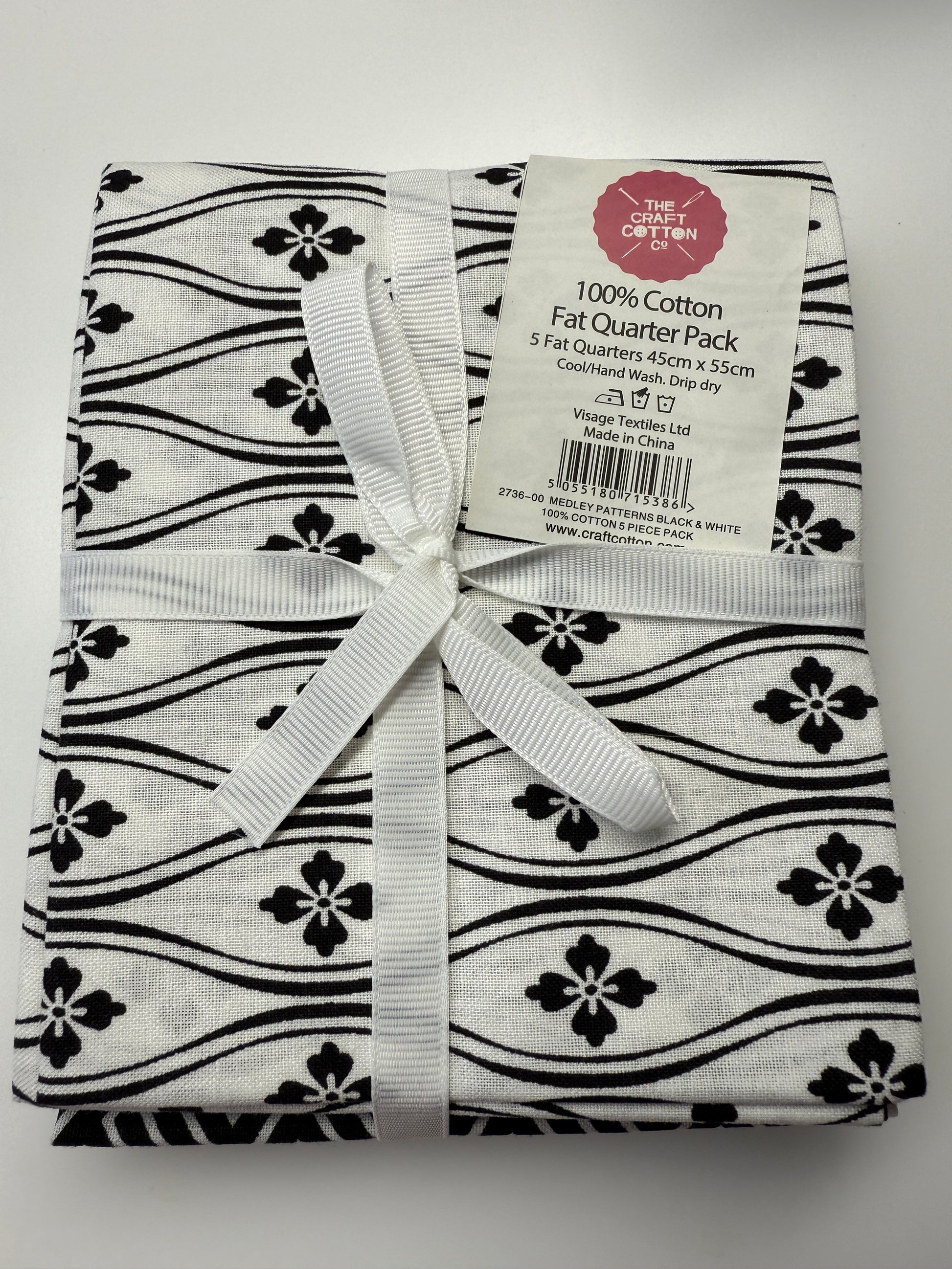 Fat Quarter Paket 5 Stück schwarz weiß a ca. 45 x 53 cm Patchwork Quilten Tasche