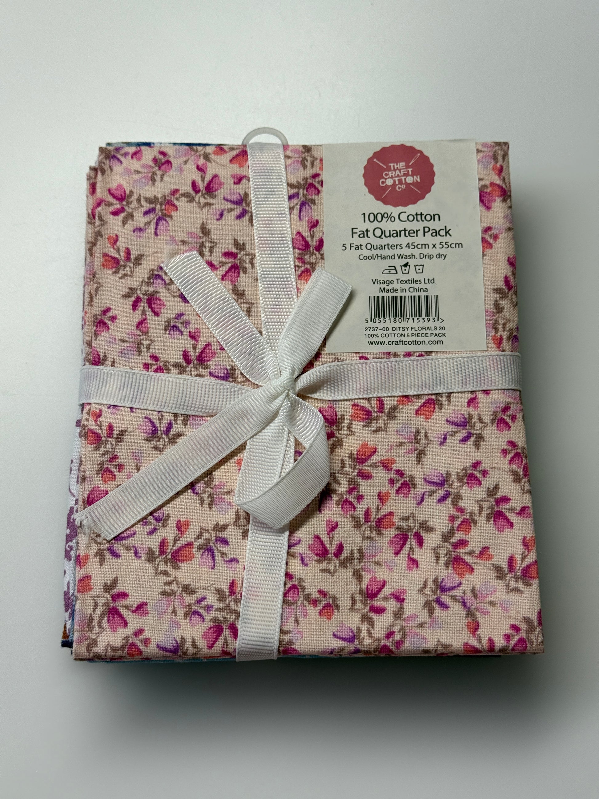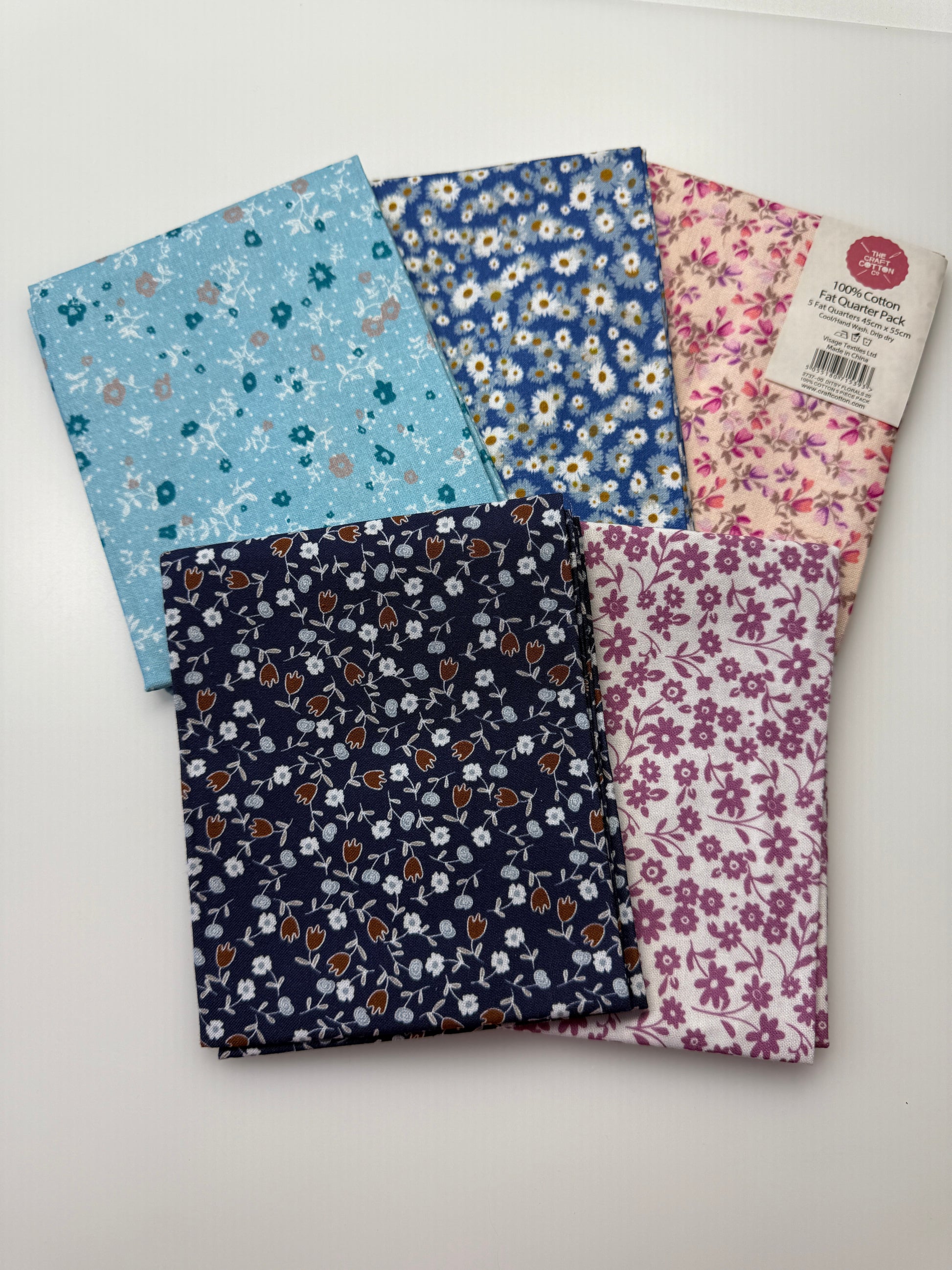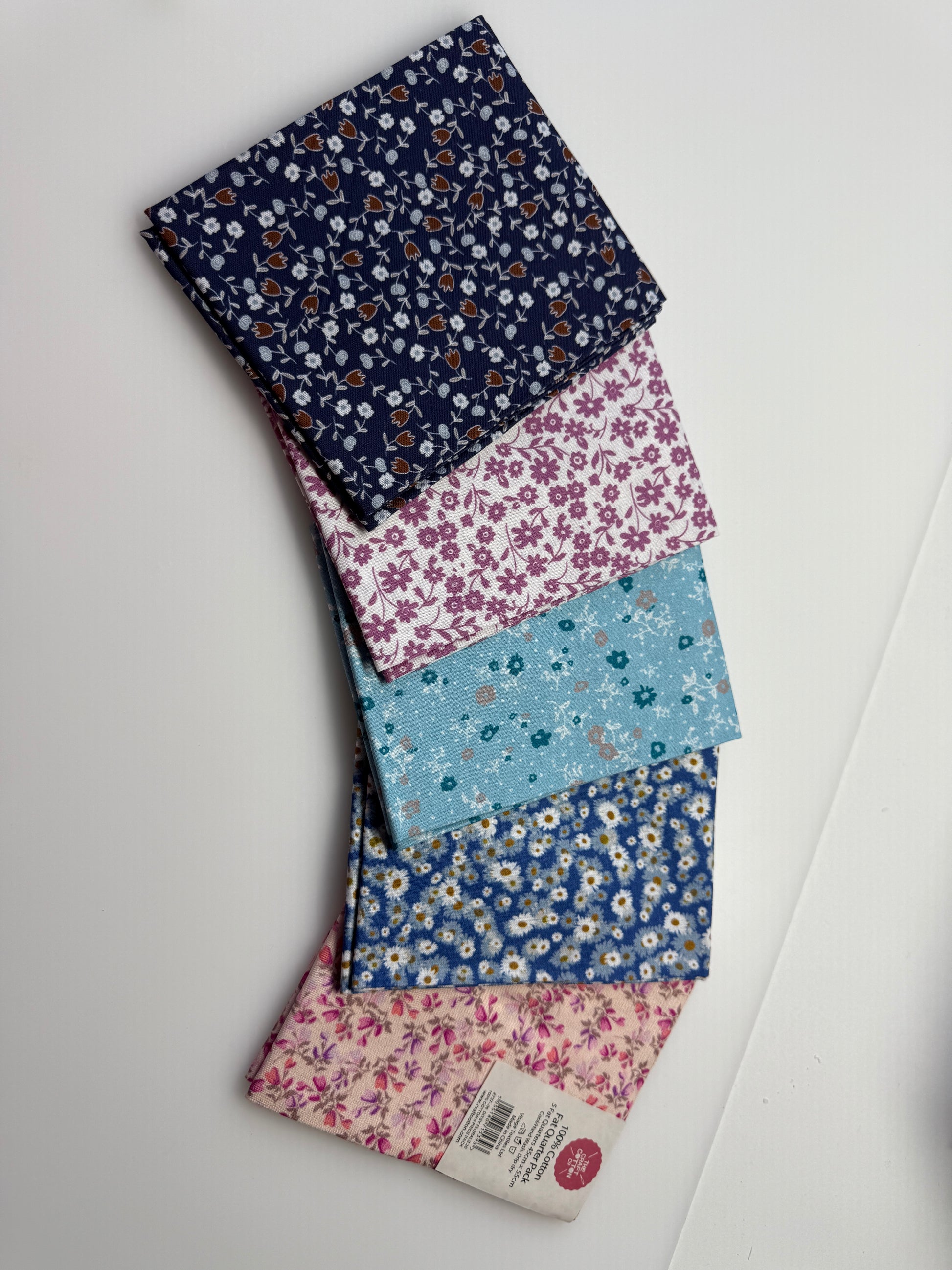 Fat Quarter Paket 5 Stück Streublumen a ca. 45 x 53 cm Patchwork Quilten Tasche