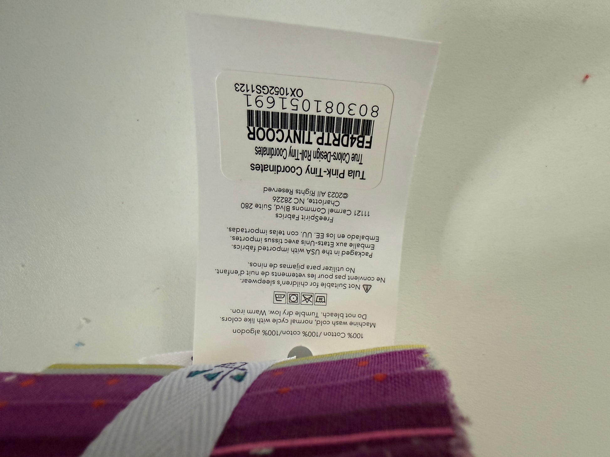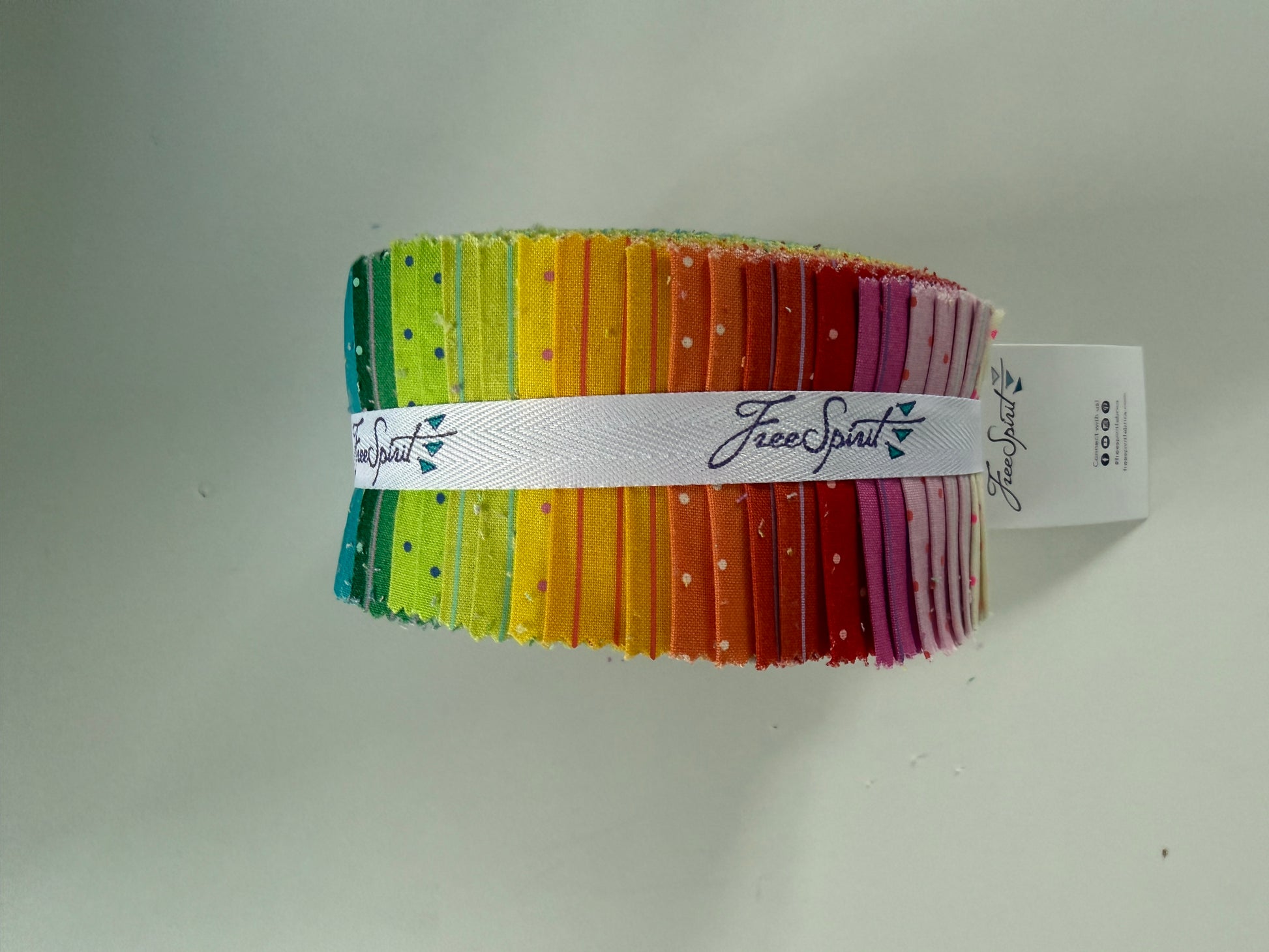 Sie kaufen eine Jelly Roll mit Stoffen aus der Tula Pink Collection „Tinx Coordinates. Jeder Stoff aus der Collection ist mit mindestens einem Streifen vertreten, manche sogar doppelt. Insgesamt sind es 42 Stoffstreifen. Die Stoffstreifen sind 2,5 Inch (ca. 5 cm) breit und etwa 42 Inch (110 cm) lang. Alle sind bunt und mit dem Muster der Tiny Coordinates (Streifen und Punkte)in verschiedenen Farben bedruckt. Diese Streifen sind ideal um Sie in einem Quilt als Kontraststreifen zu vernähen.