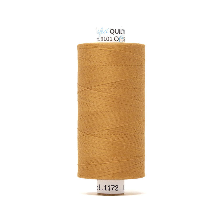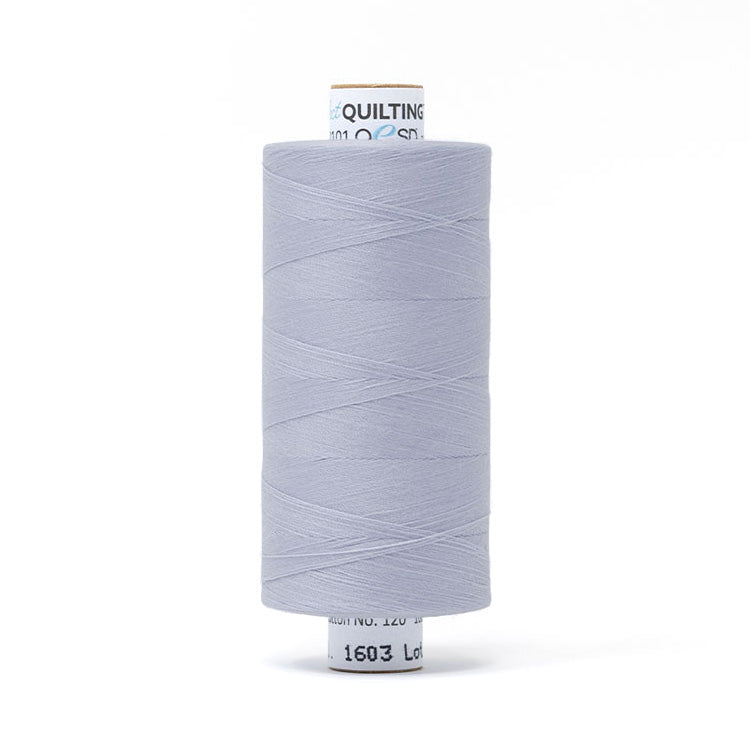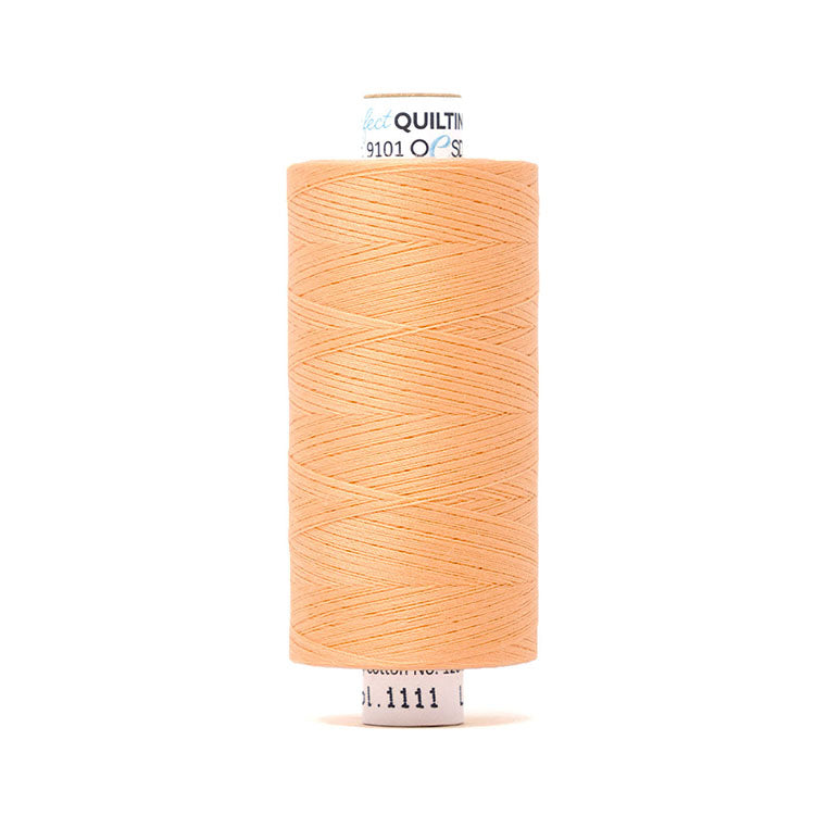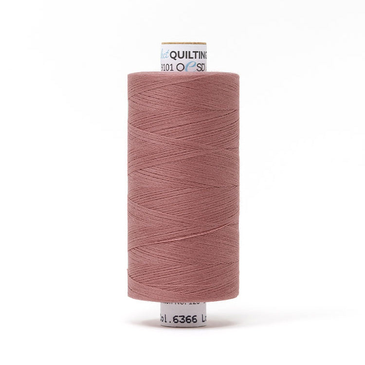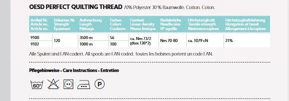 Es handelt sich um ein ganz neues Garn aus dem Hause Amann/Mettler. Das Garn hat einen Polyesterkern, welcher mit Baumwolle umwickelt ist. Dadurch verbindet es die beiden Eigenschaften gerade beim Quilten perfekt miteinander. Das Garn ist stabil und reissfest da es einen Polyesteranteil von 70% hat und durch die 30% Baumwolle, welchen den Polyesterkern umgeben ist das Garn weich und passt sich dem Quiltobjekt hervoragend an.