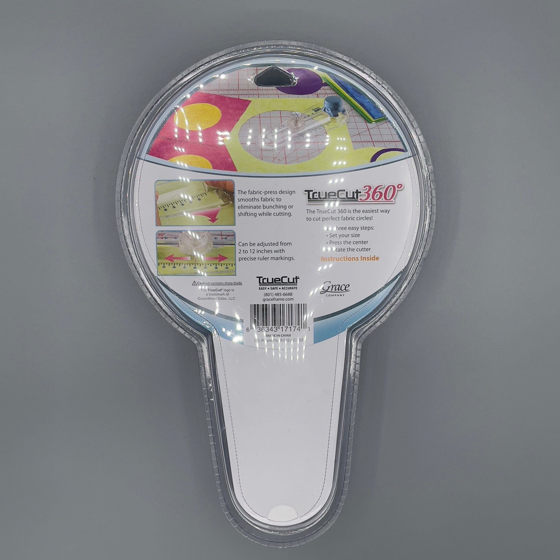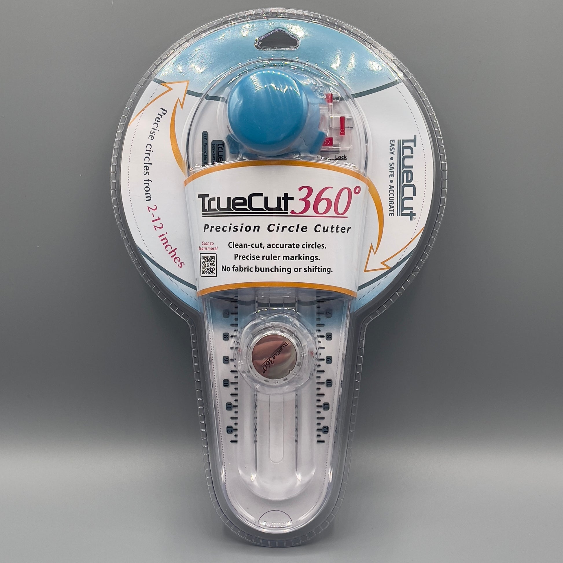 Dieser Kreis-Schneider hilft ihnen präzise Kreisförmige Schnitte zu setzen, ohne dass der Stoff verrutscht oder zerknautscht. Und es geht ganz einfach; Als erstes stellen sie die Größe des erwünschten Kreises ein, daraufhin drücken die den Knopf in der Mitte herunter und als letztes drehen sie den Kreisschneider einmal um Ihr Handgelenk. Auf diese Art und Weise erhalten Sie perfekte Kreise in der benötigten Größe ohne lange mit Schablone oder Plotter hantieren zu müssen und auch der Griff zur Schere kann entfallen. Sollte die Klinge stumpf werden kann diese ganz leicht ersetzt werden.
