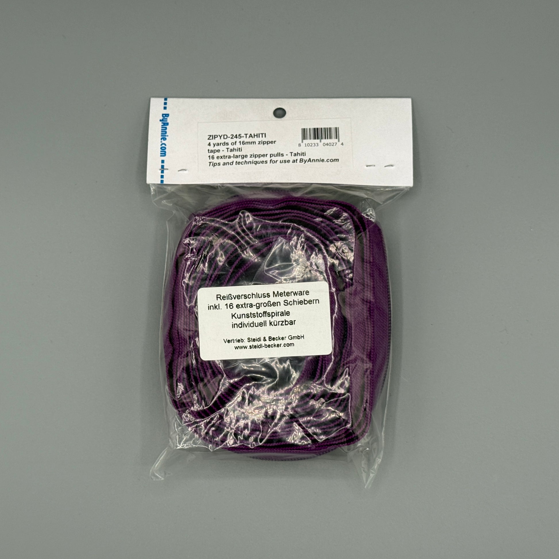 Endlosreißverschluss Meterware 3,65 Meter (4 Yards) in Farbe tahiti (lila) mit 16 Schiebern, Kunststoffspirale (Reißverschlussraupe), individuell kürzbar.