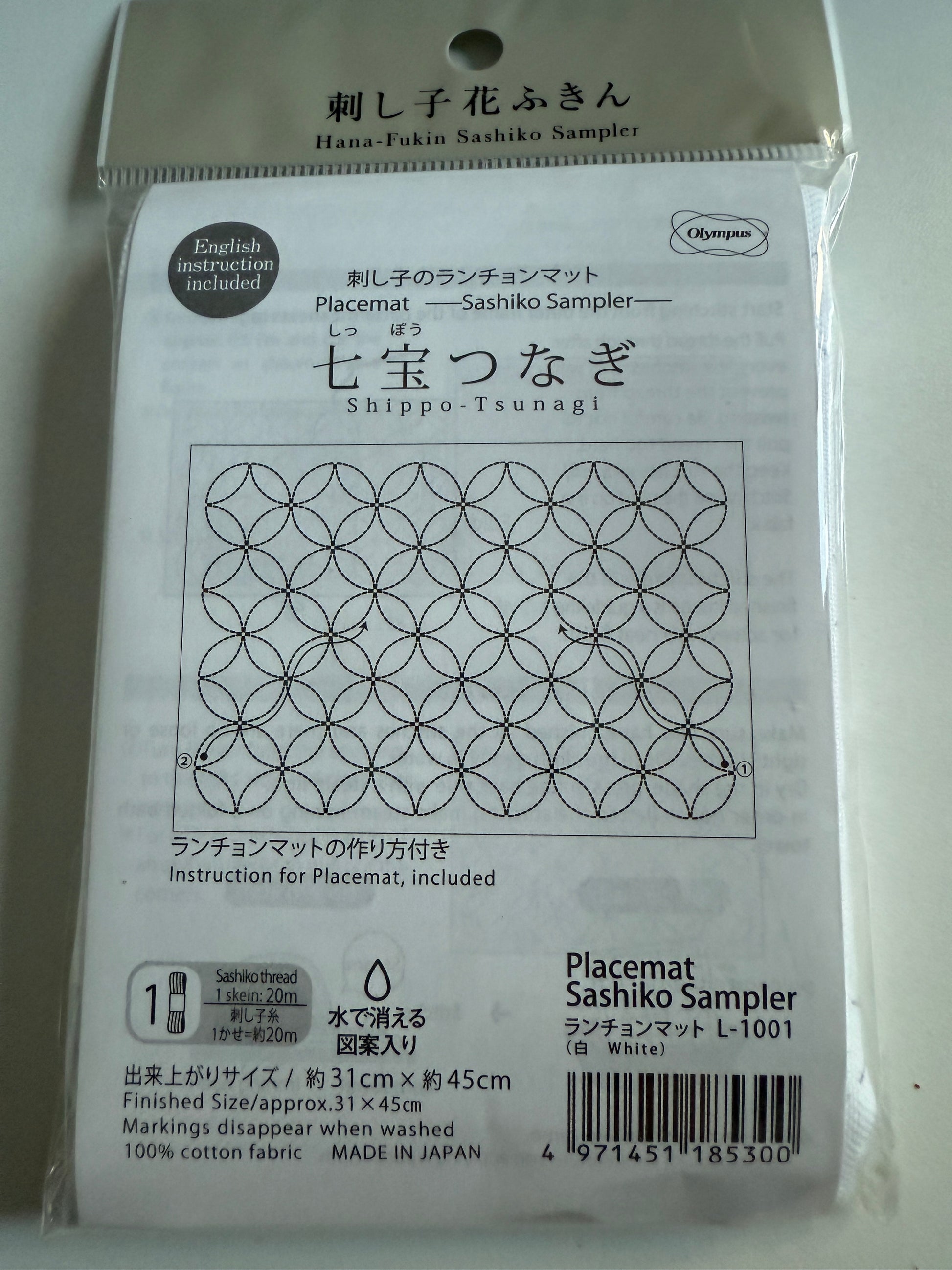 Sashiko Stoff vorgedruckt weiß 31x45cm Tischset ohne Garn auswaschbar Anleitung