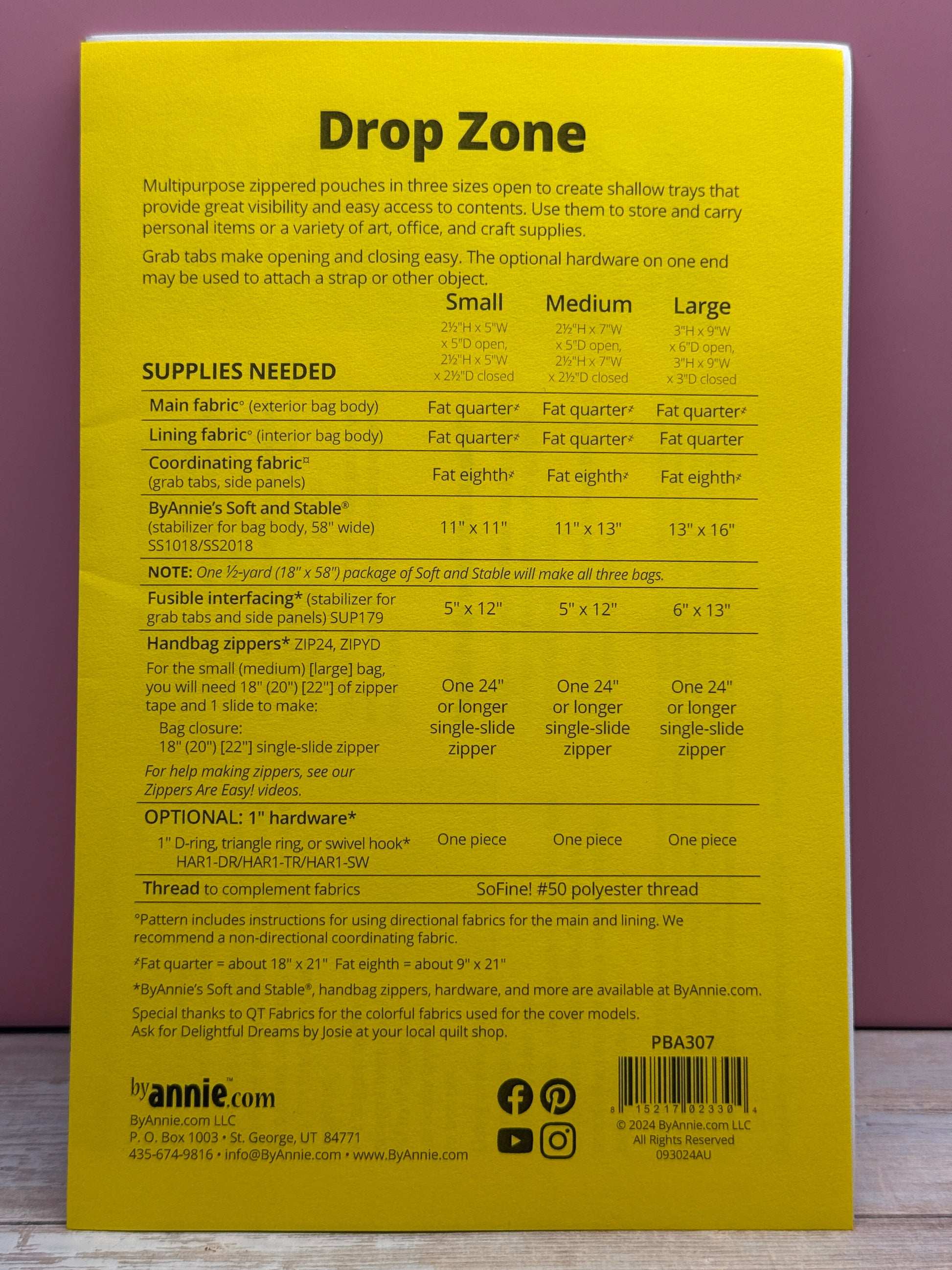 Schnittmuster "Drop Zone" Zippered Troy Trio Täschchen 3 Größen by Annie