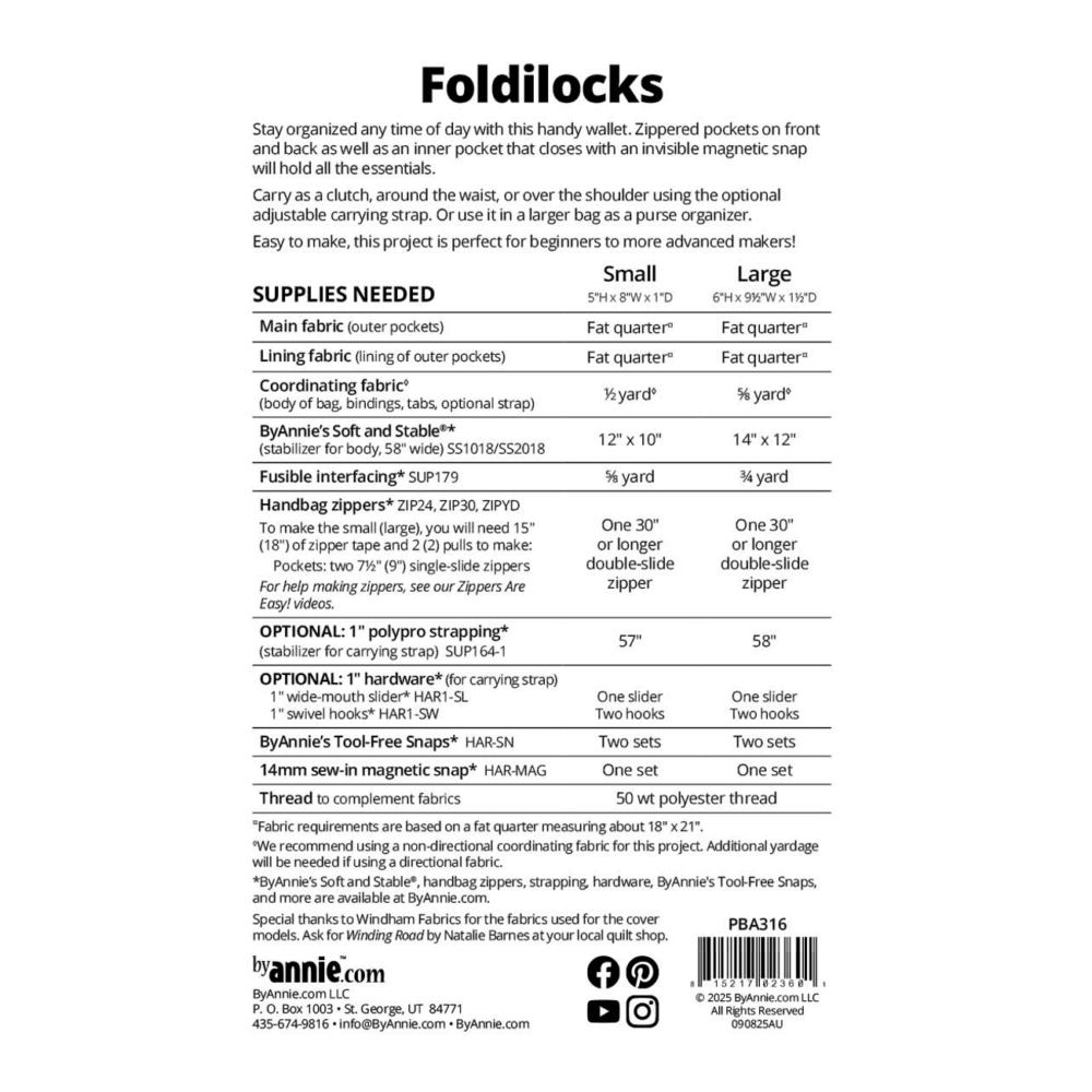 Schnittmuster Foldilocks ByAnnie's Umhängetasche Clutch Portemonnaie